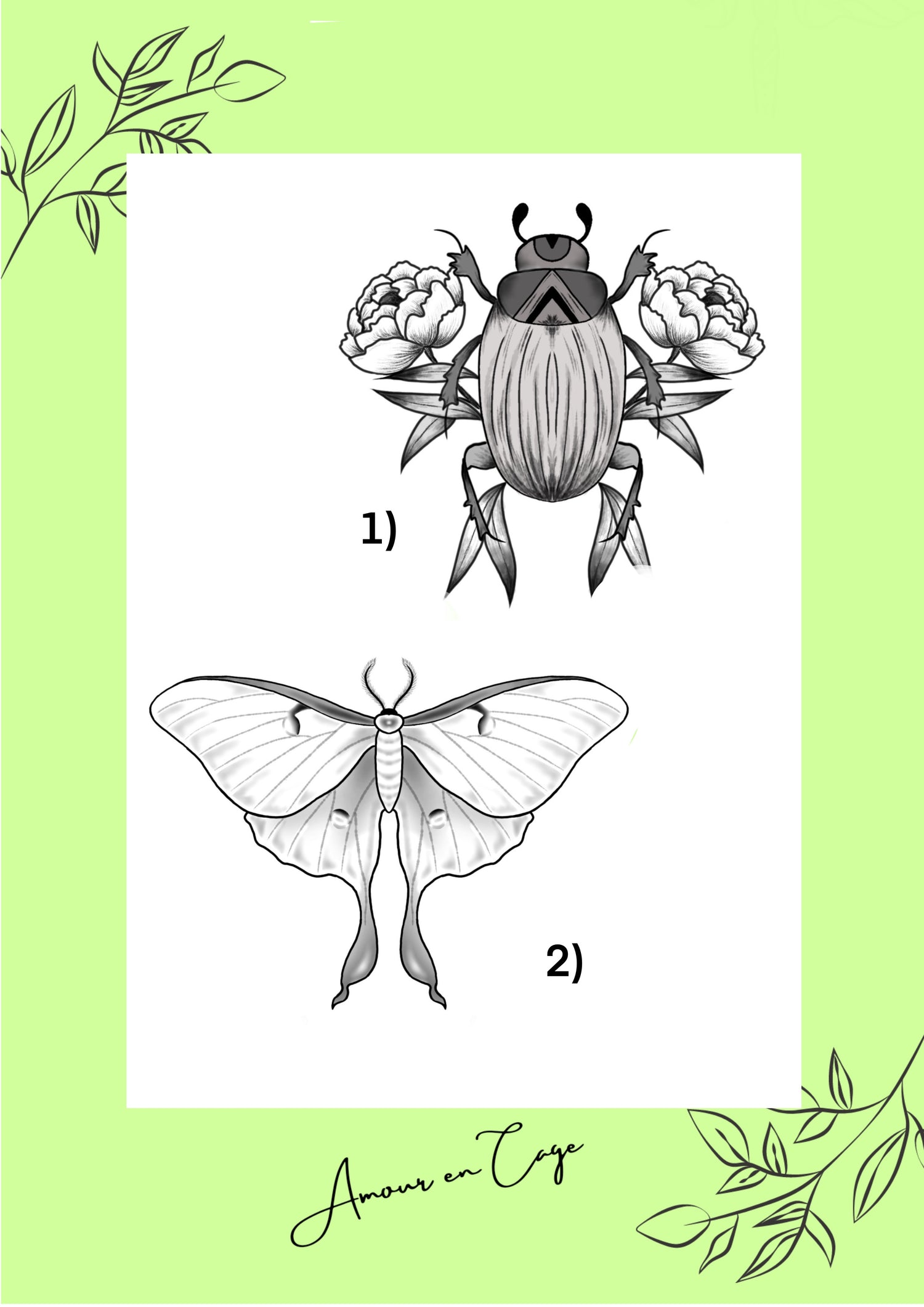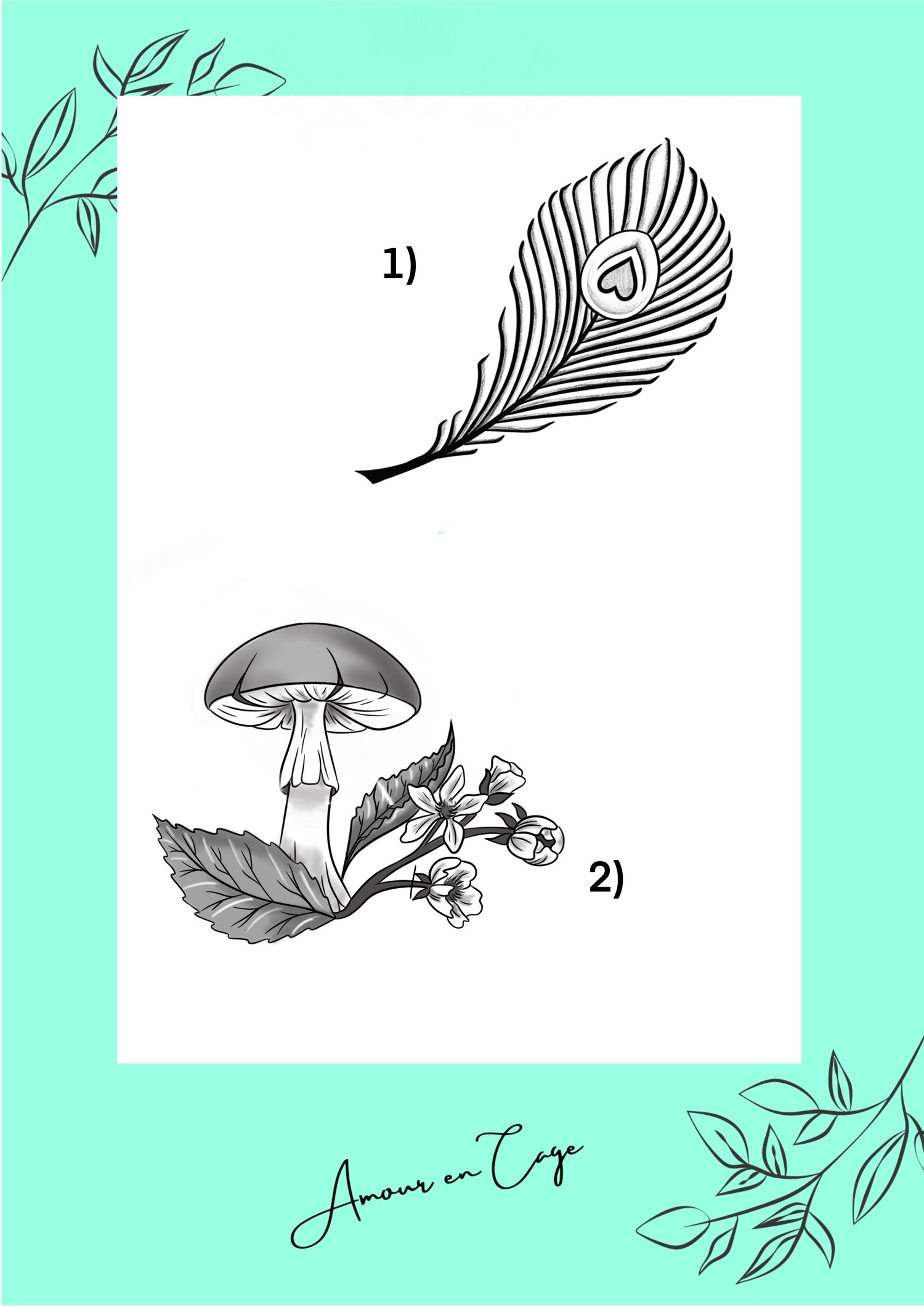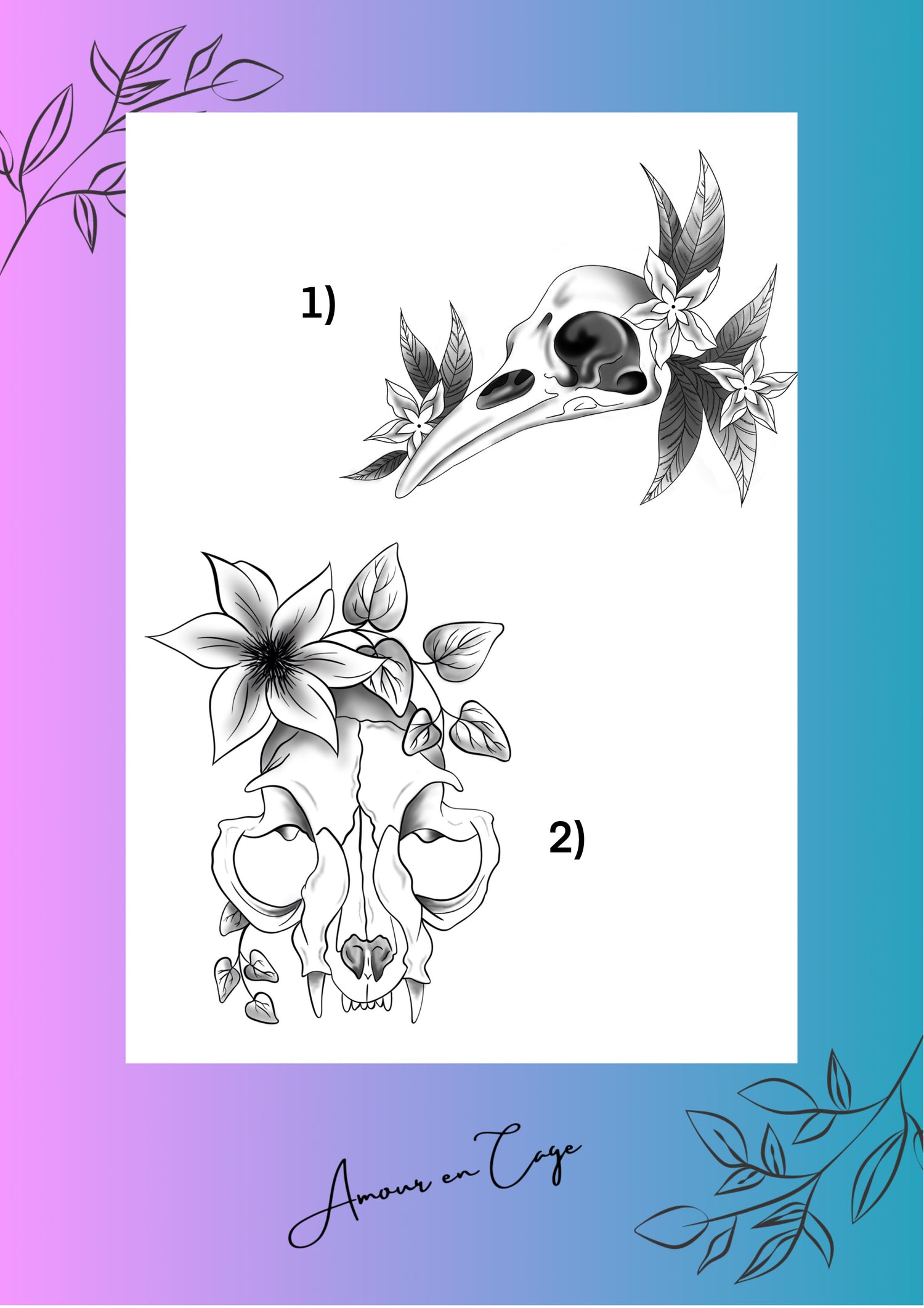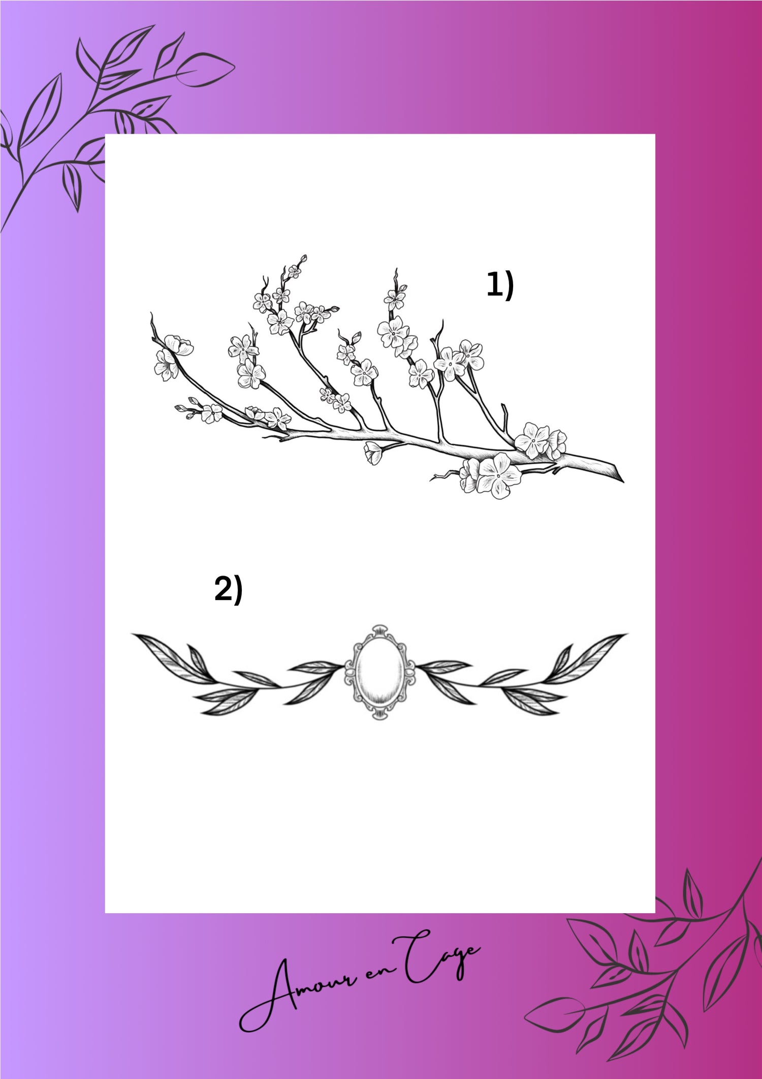 Possibilité en noir et blanc ou couleur. Taille minimum 14cm pour la branche, parfaite pour un avant bras ou un trapèze. Le médaillon est quant à lui pensé pour être sous la poitrine! Merci de préciser le numéro du motif qui vous intéresse dans votre formulaire de demande ;)