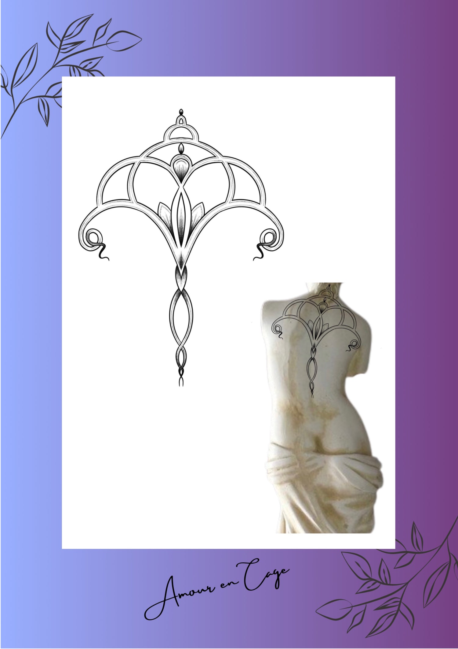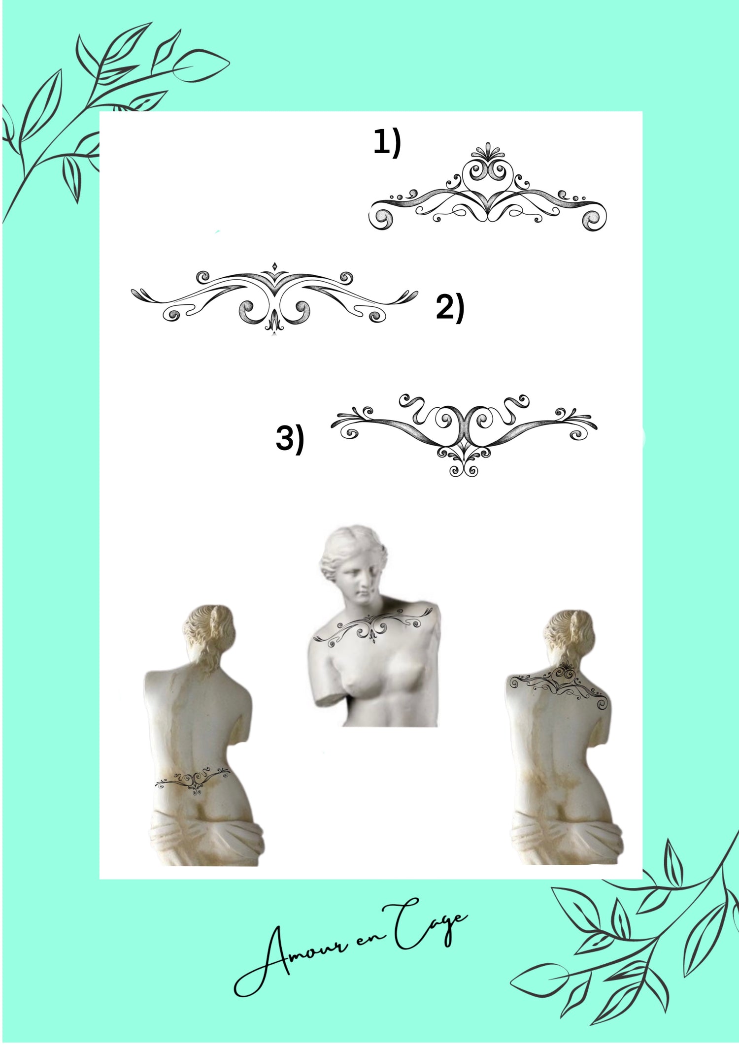 Des ornements Art Nouveau pensés pour des omoplates, des reins ou une buste! Merci de préciser le numéro du motif qui vous intéresse dans votre formulaire de demande ;)