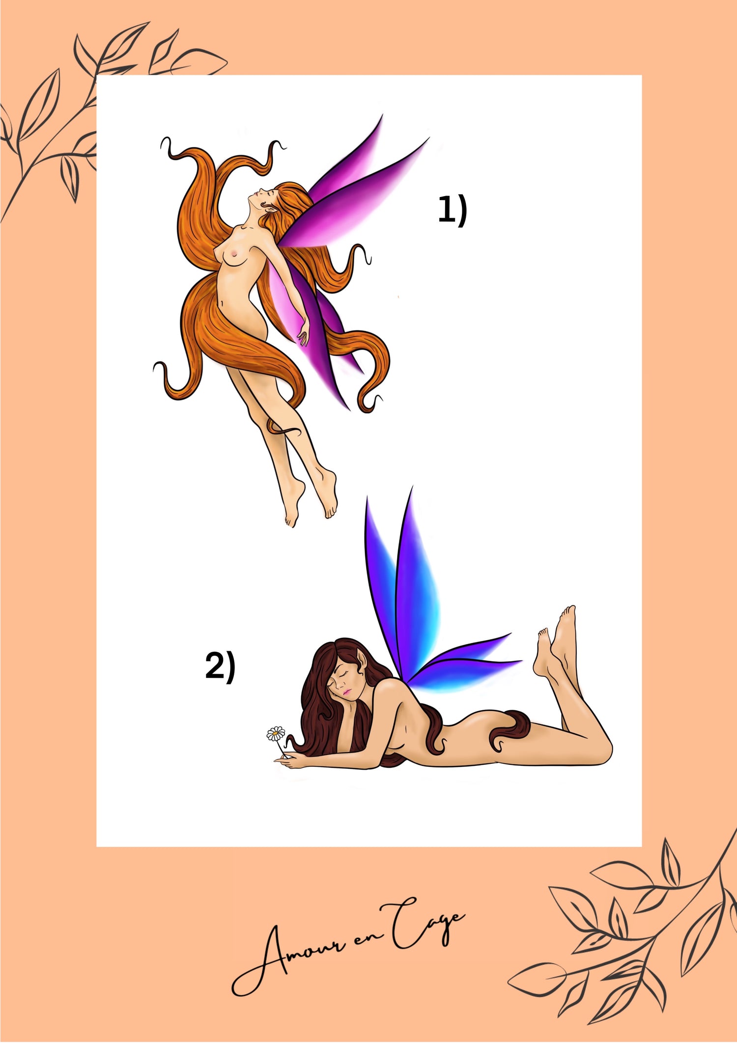 Possibilité de changer les couleurs des cheveux et des ailes. Taille minimum 12cm.Merci de préciser le numéro du motif qui vous intéresse dans votre formulaire de demande ;)