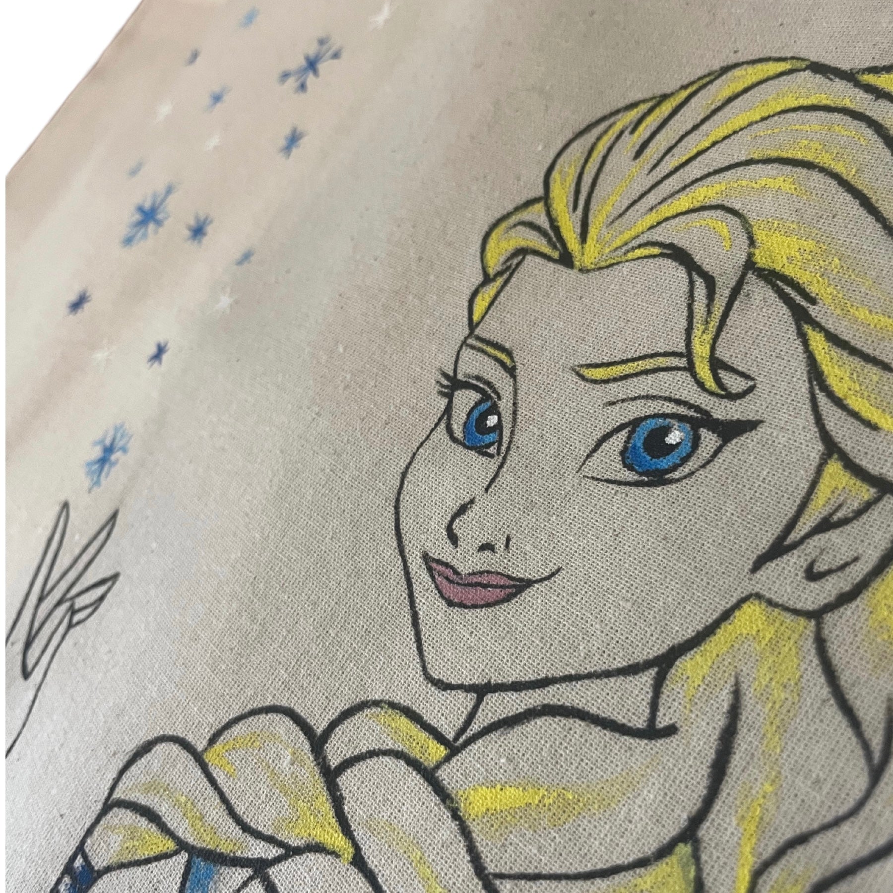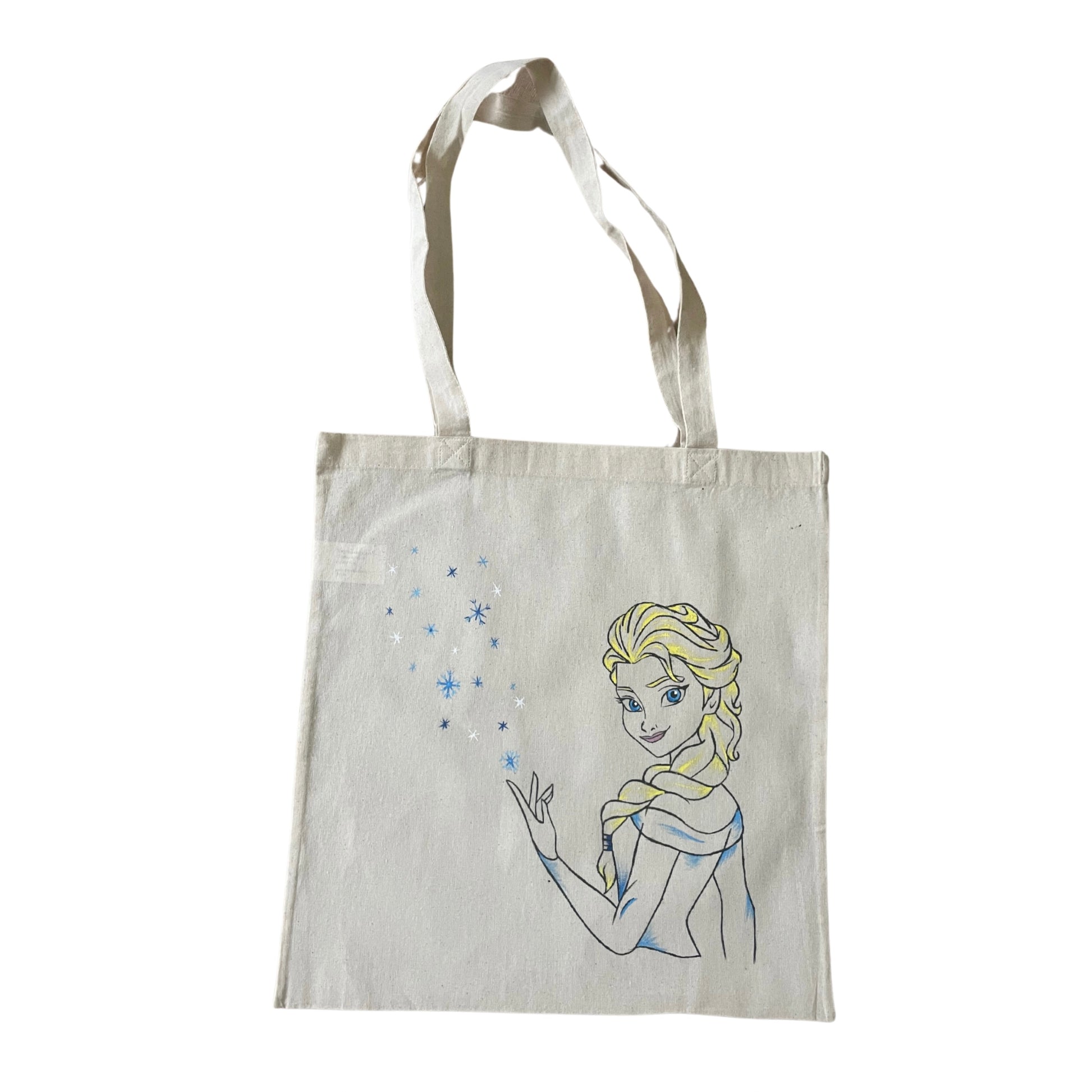 Emportez un peu de magie avec vous grâce à notre Tote Bag "La Reine des Neiges", peint à la main avec soin !