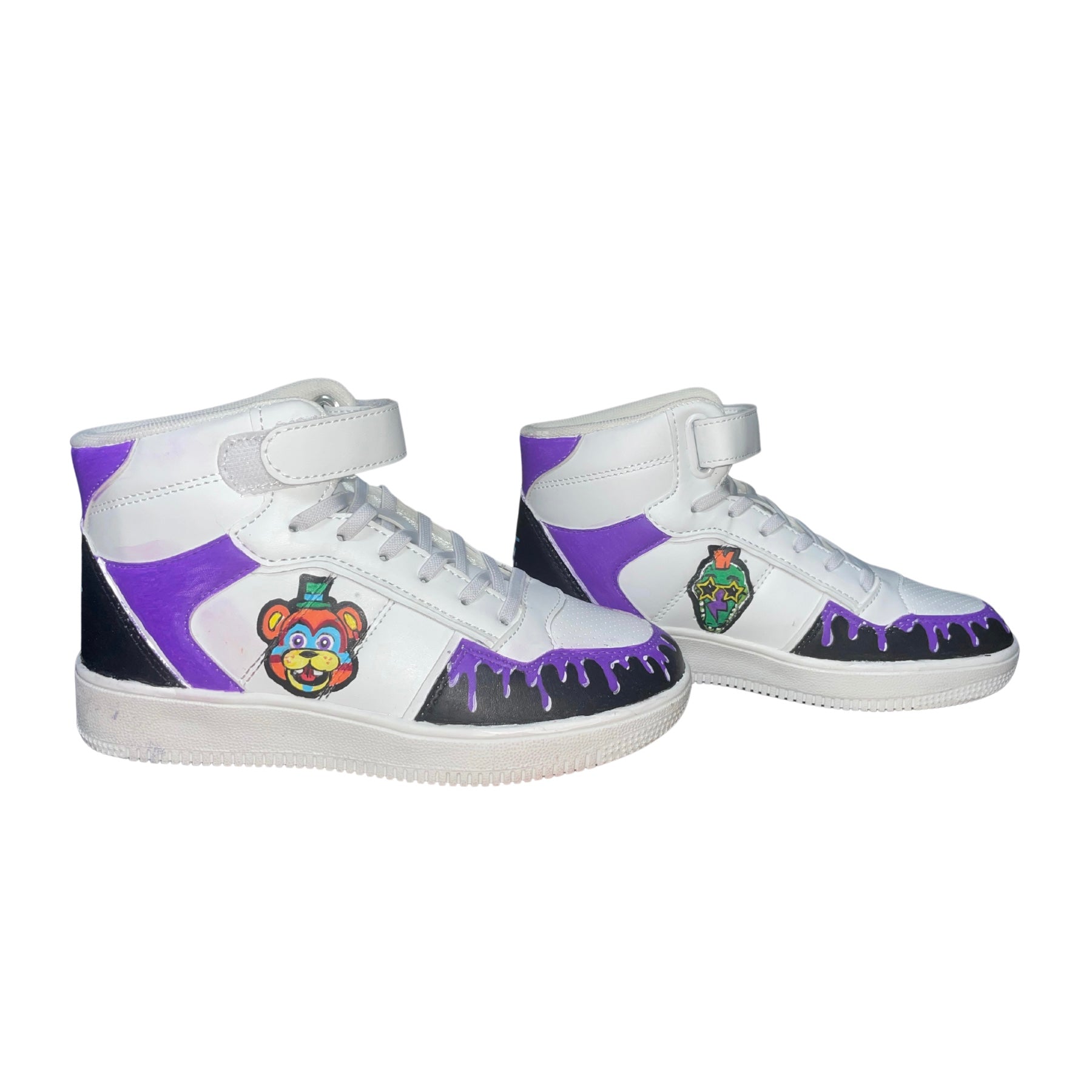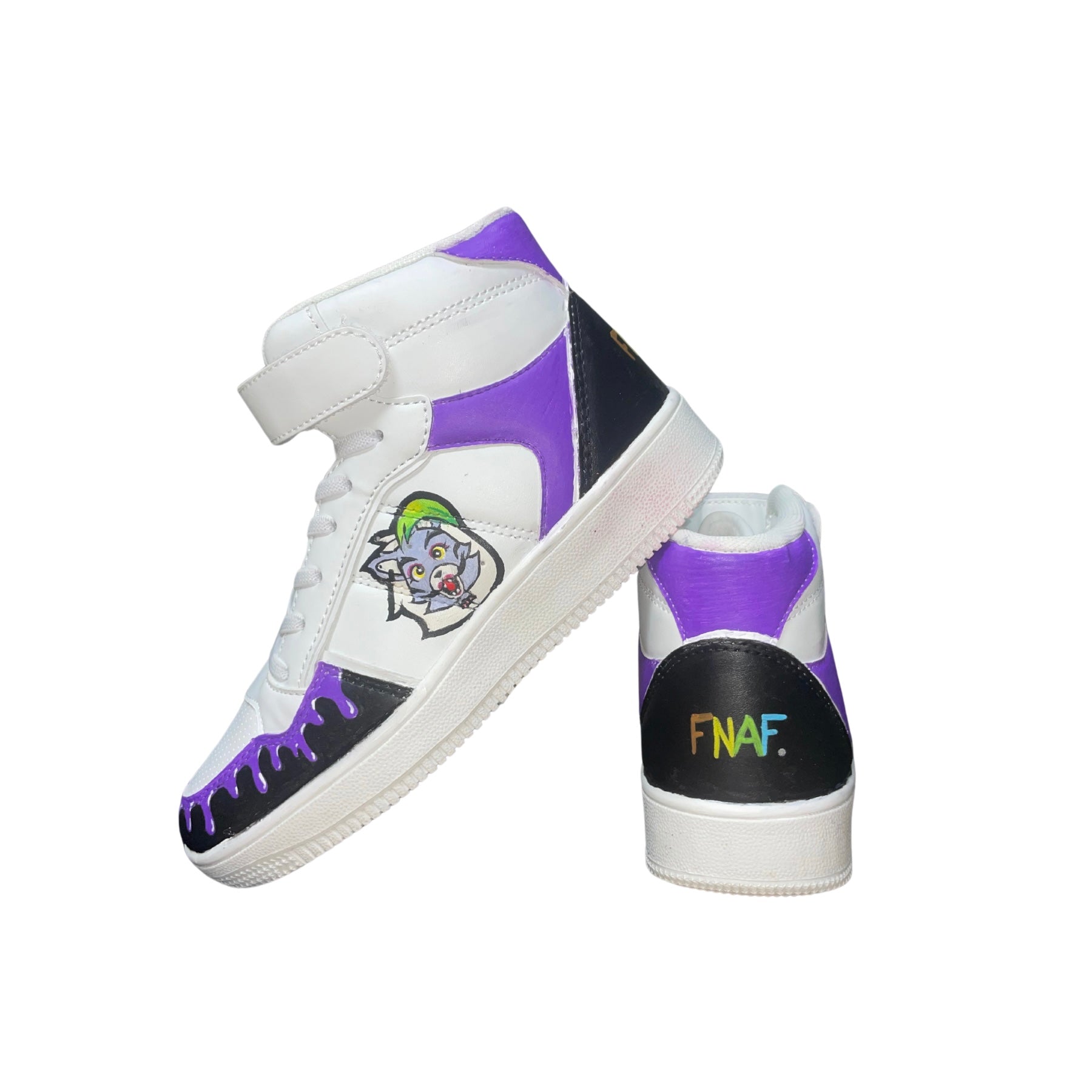 Ornées des personnages emblématiques de l'univers FNAF et de coulures violettes, ces baskets personnalisées capturent l’atmosphère sombre et mystérieuse du jeu. Cette paire, peinte à la main avec soin, allie originalité et frissons, pour les fans de Five Nights at Freddy's qui veulent afficher leur passion avec style et audace.