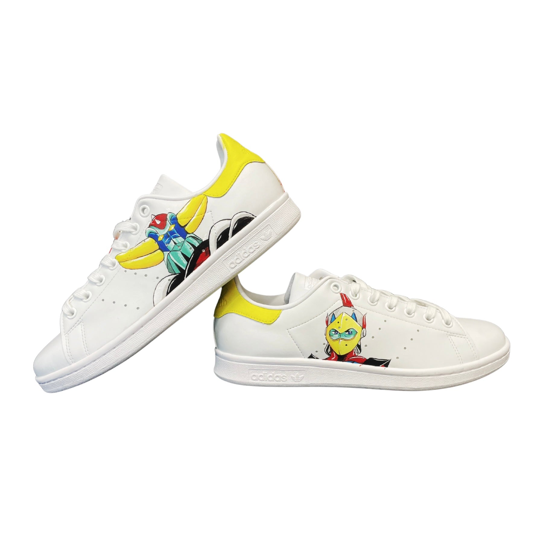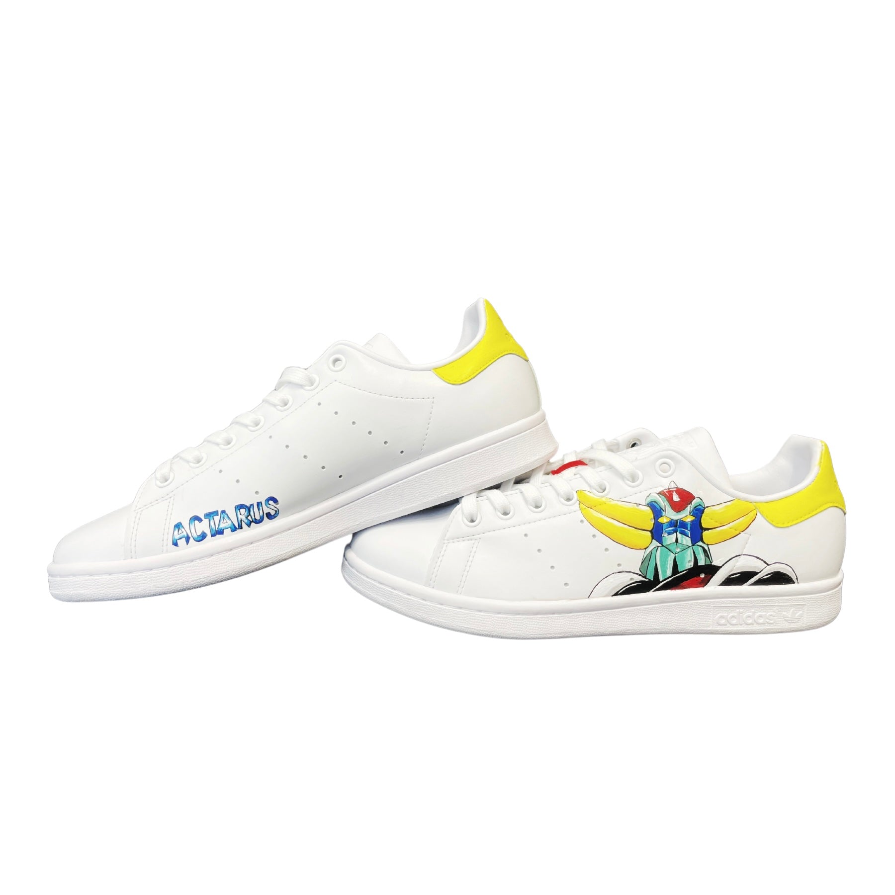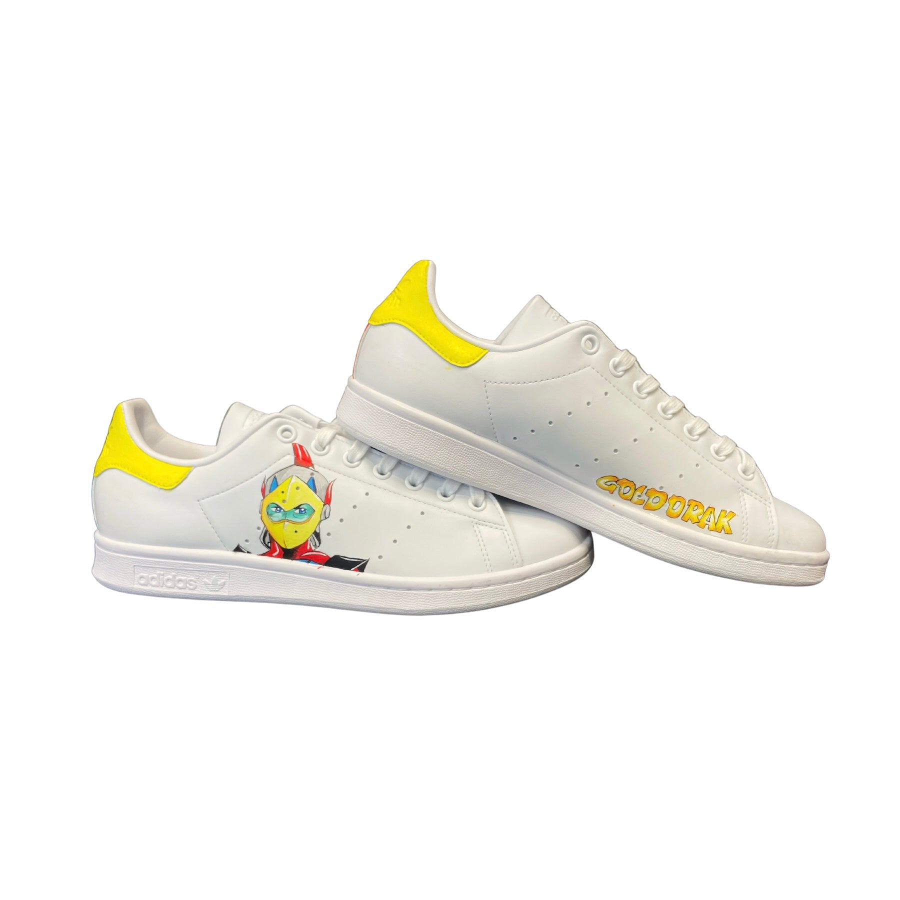 Ornées de l’emblématique robot et de son acolyte issus de l’univers Goldorak, ces baskets personnalisées capturent l'énergie et la puissance de ce héros légendaire. Cette paire, peinte à la main avec soin, allie style rétro et originalité, pour les fans qui souhaitent afficher leur passion pour cet anime culte avec caractère et audace.