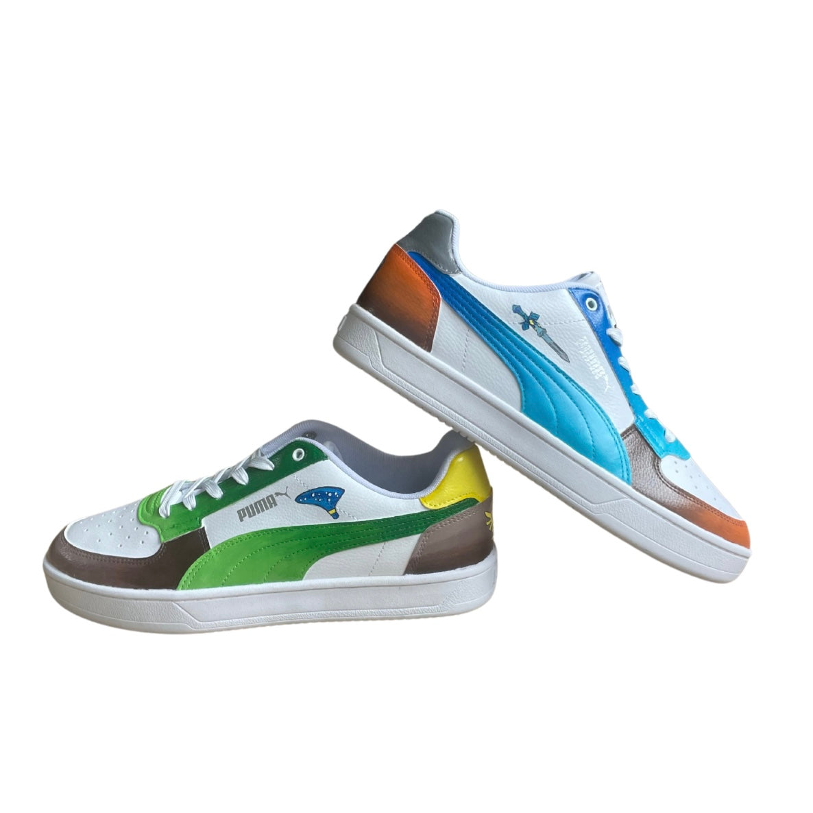Ornées d’éléments emblématiques du jeu et du logo de Zelda, ces baskets dépareillées aux dégradés de couleurs vibrantes capturent l'esprit magique et aventureux de la saga. Cette paire unique , peinte à la main avec soin, allie style, créativité et passion pour les fans qui veulent porter leur amour du jeu avec originalité et flair.