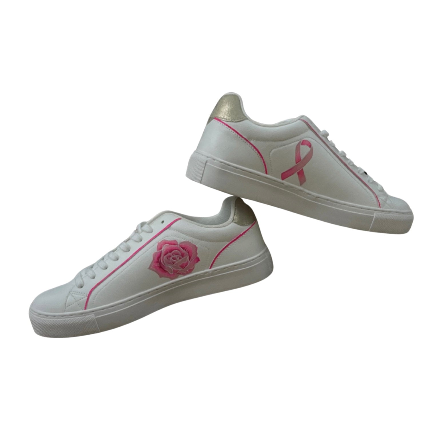 Ornées d'un ruban rose et d'une rose, ces baskets personnalisées sont un symbole de solidarité et d'espoir dans la lutte contre le cancer du sein. Cette paire unique, peinte à la main avec soin, allie style et engagement, apportant une touche significative et pleine de soutien à votre look.