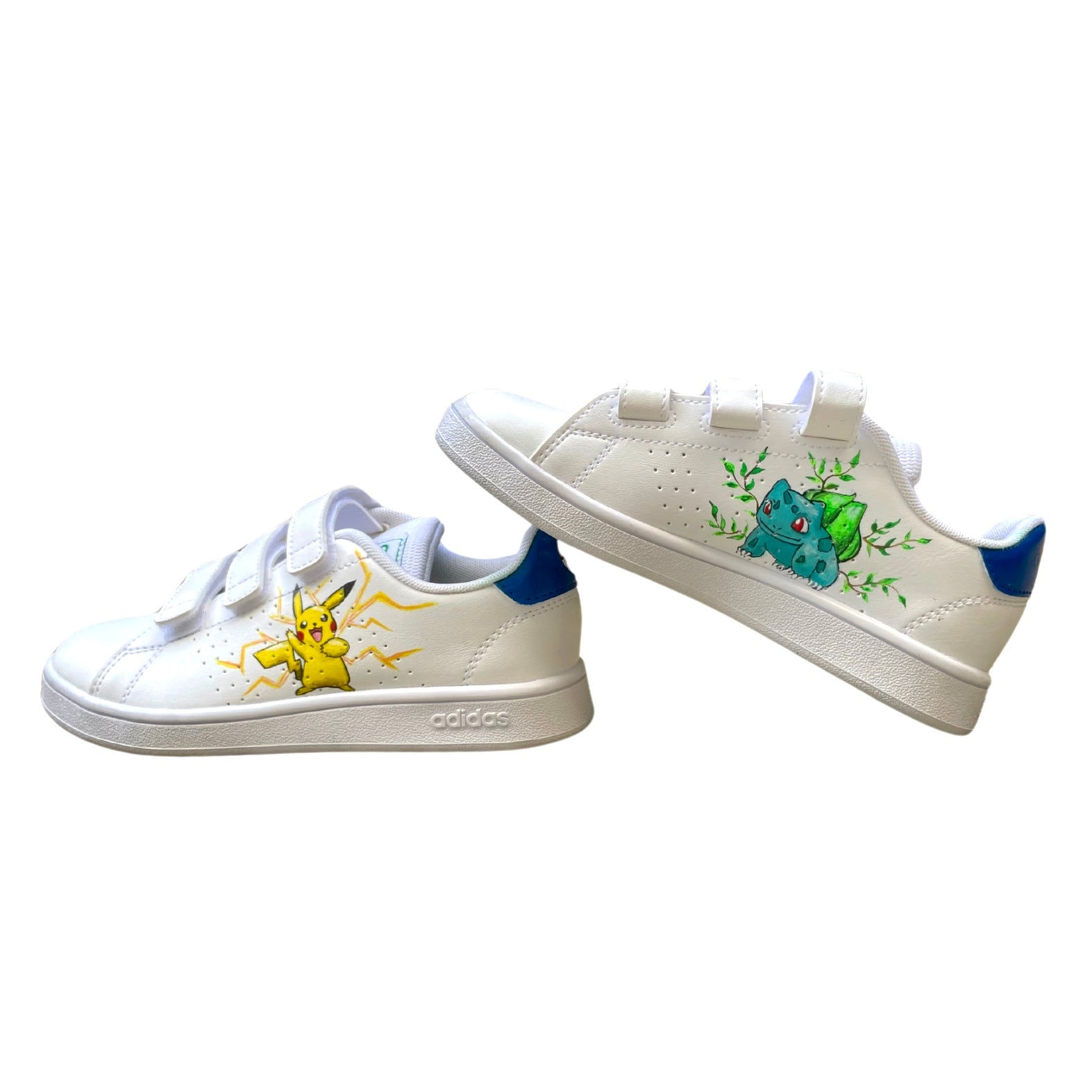 Cette paire de chaussures personnalisées, peintes à la main, sur le thème de vos Pokémon préférés. Avec Pikachu, Bulbizarre, Salamèche et Carapuce, ces sneakers apportent toute la magie de l'univers Pokémon directement à vos pieds !